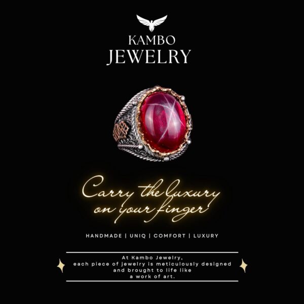 KAMBO Özel Koleksiyonu, 925K Katı Gümüş Erkek Yüzüklerimizin eşsiz zarafetini keşfetmeniz için sizi davet ediyor. Koleksiyonumuzdaki her doğal taş, kendine özgü güzelliği ve getirdiği benzersiz enerji ile seçilmiştir. El yapımı yüzüklerimiz, zarif işçiliklerinin bir kanıtıdır ve lüks ile kişisel ifadenin özünü yansıtır. KAMBO, yüzüğünüzü tam ölçünüze ve tercihlerinize göre özelleştirme imkanı sunarak, sizi ince mücevherler dünyasına yakın bir yolculuğa çıkarıyor. Doğa ve sanatı bir araya getiren olağanüstü taş yüzüklerimizle, her biri kalite, tatmin ve zamansız zarafet vaadi taşır. Yüzük Ağırlığı: 19gr Taş Boyutu: 20-15mm