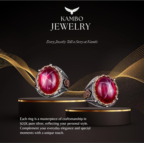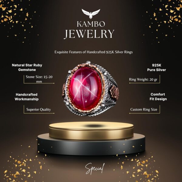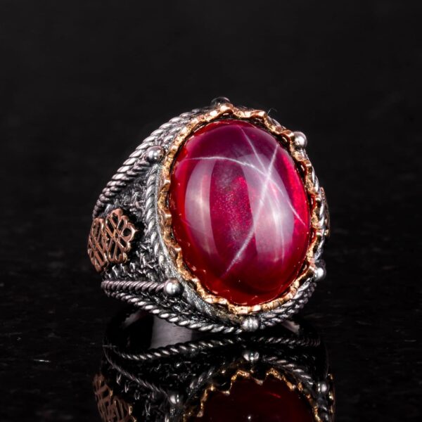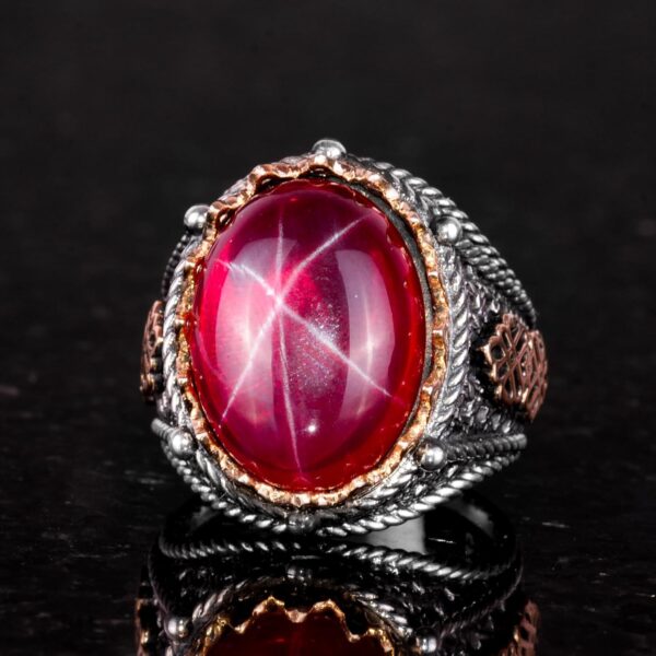 925 Ayar Gümüş Erkek Yüzüğü, El Yapımı Doğal Yıldız Yakut Taşlı Yüzük