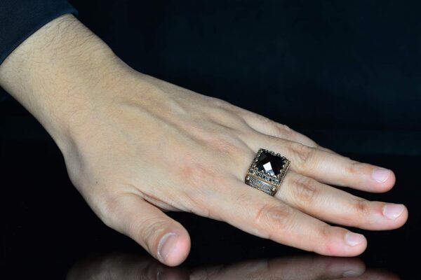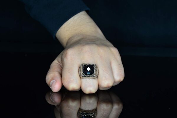 925 Ayar Gümüş Erkek Yüzük – 6 Kenarlı Yapay Oniks Taşı
