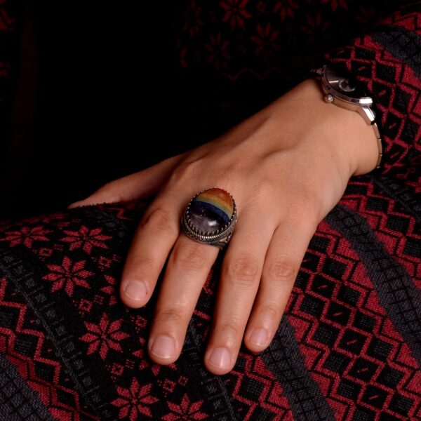 925 Ayar Gümüş Erkek Yüzük, Gökkuşağı Yüzüğü, Çok Renkli, Eşsiz El Yapımı Yüzük Ağırlık: 15.79gr