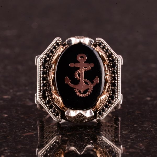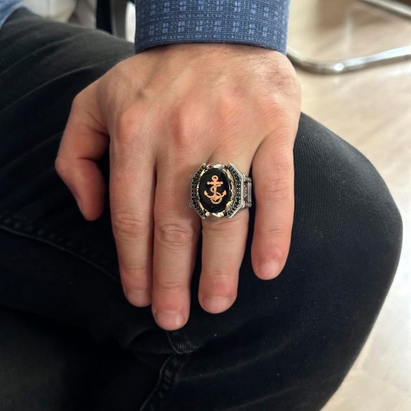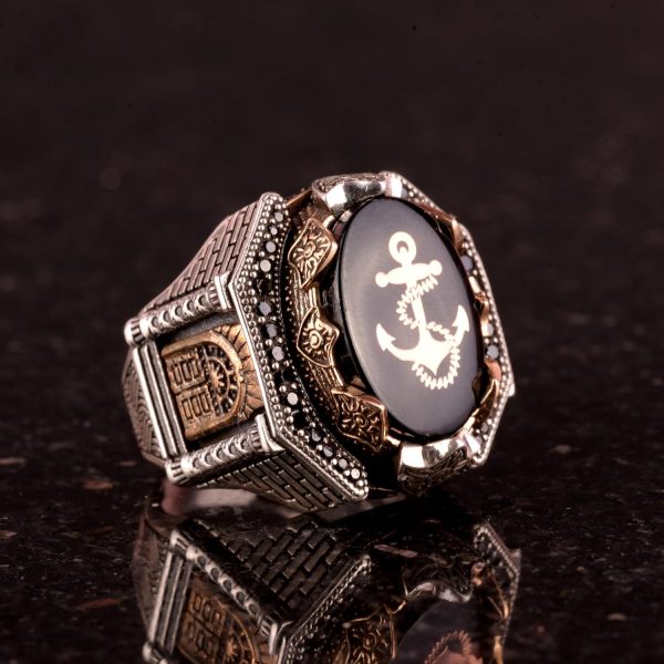 925 Ayar Gümüş Erkek Yüzük – Çapa Yüzük – Kaptan Denizci Yüzüğü – Deniz Temalı Takı