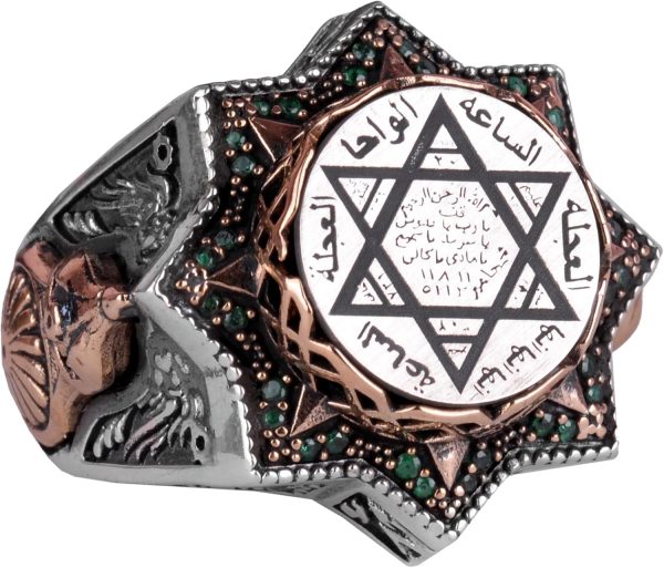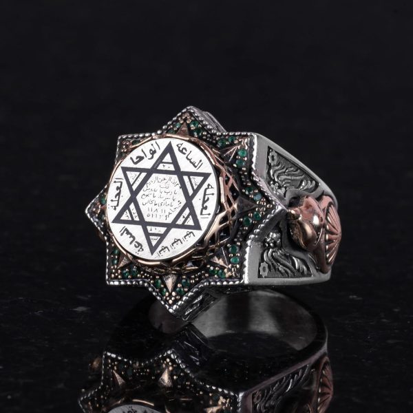 Kral Süleyman Erkek Yüzüğü, Süleyman Mührü Yüzüğü, Tılsım Yüzüğü, Erkekler için 925K Ayar Gümüş Yüzük. Ağırlık: 25.59gr