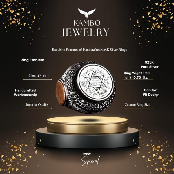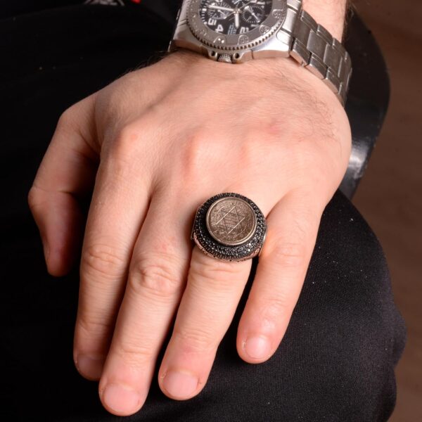 925 Ayar Gümüş Erkek Yüzük, Davud’un Yıldızı, Süleyman Yüzüğü, Eşsiz El Yapımı Gümüş Yüzük Ağırlık: 21.15gr
