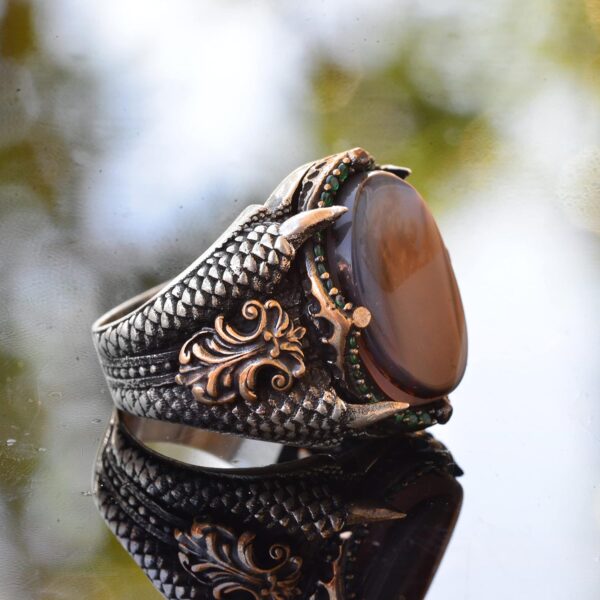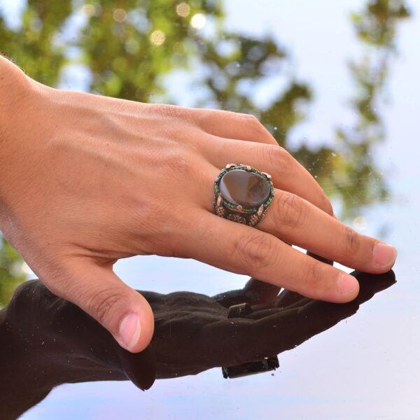 Bu yüzük, doğum günleri, yıldönümleri veya tatiller gibi özel günler için mükemmel bir hediye seçeneğidir. Şık tasarımı ve akik taşının sembolik gücü ile herhangi bir erkeğin takı koleksiyonuna değerli bir katkı sağlar.
