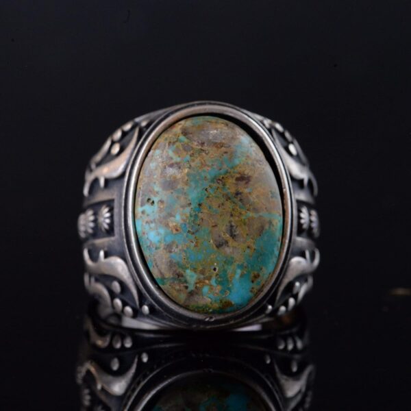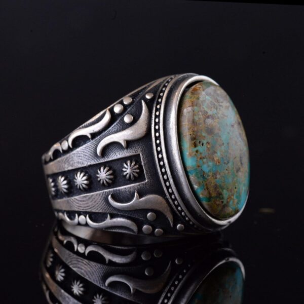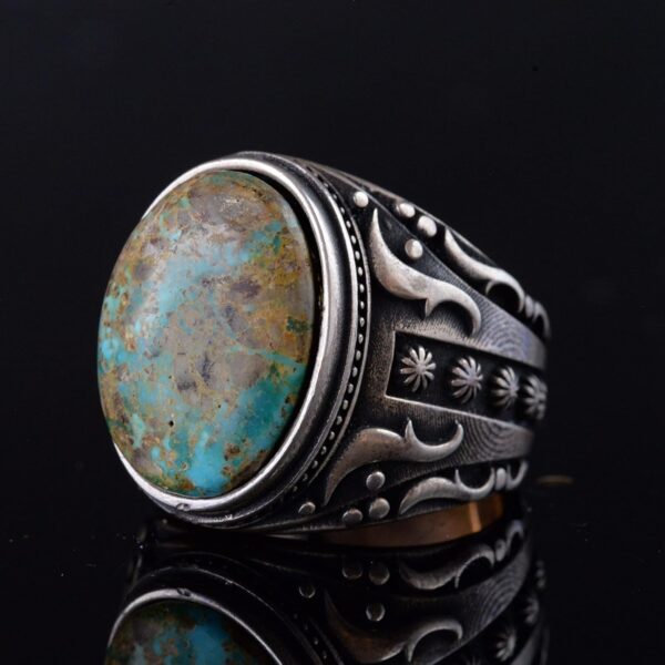 Doğal Arizona Turkuaz Taşlı 925 Ayar Gümüş Erkek Yüzük – Vintage Tasarım El Yapımı Takı