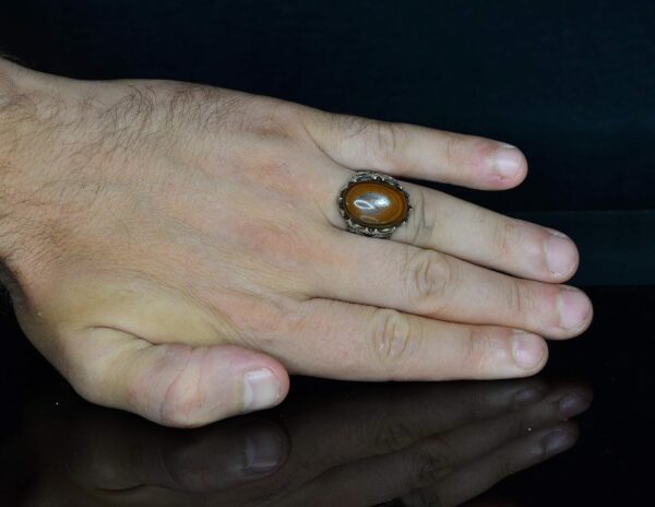 925 Ayar Gümüş Erkek Yüzük Doğal Demir Kaplan Gözü Taşı ile