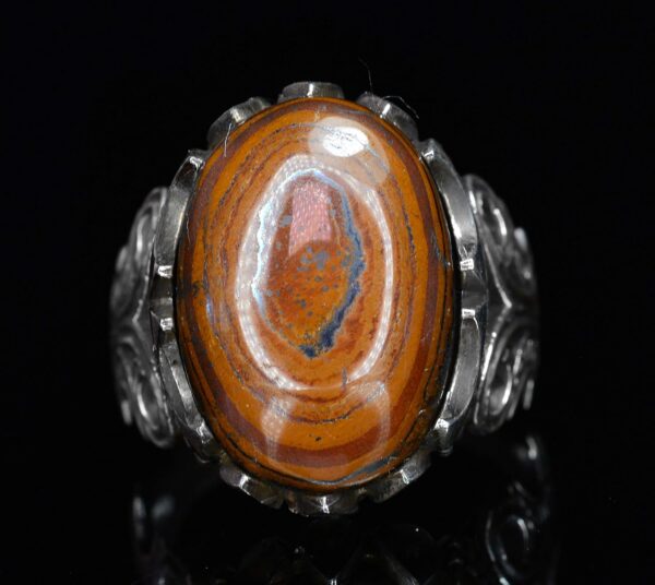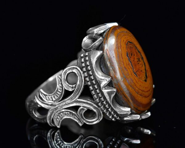 Doğal demir tigereye taşı ile süslenmiş 925 ayar gümüş erkek yüzüğünüzle stilinizi yükseltin. Şimdi sipariş verin ve kombinlerinize bir dokunuş zarafet katın.