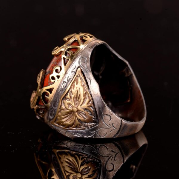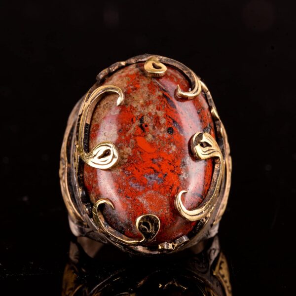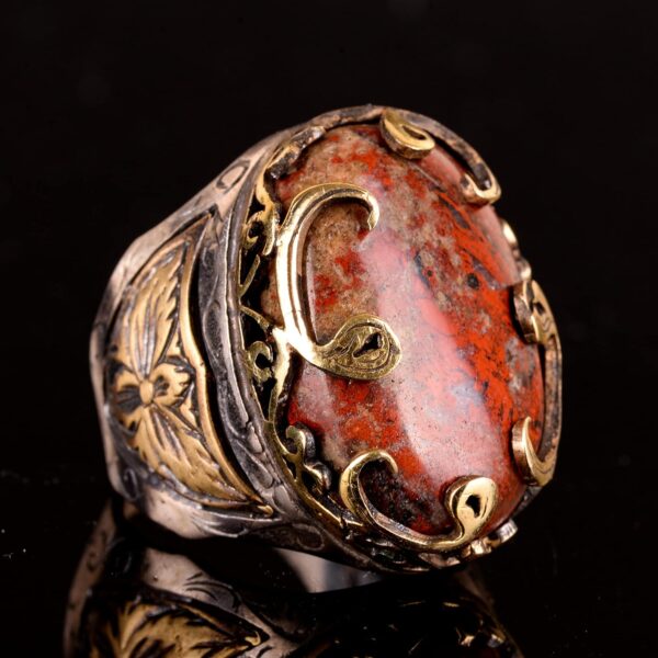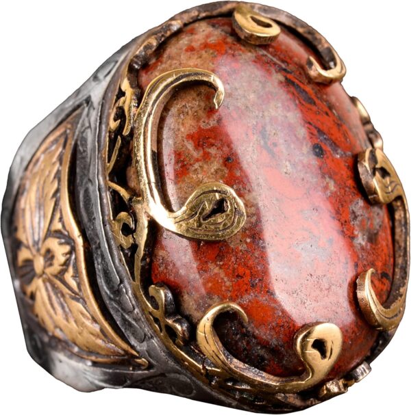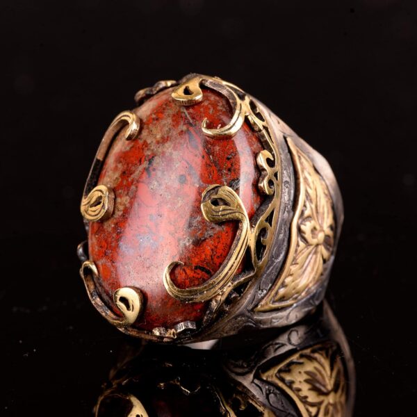 Bu Doğal Kan Taşı Osmanlı Tasarımı Yüzük ile takı koleksiyonunuza kültürel bir zarafet ve miras katın. Gelenek ve stili kutlamak için hemen sipariş verin.
