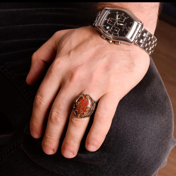 925 Ayar Gümüş Erkek Yüzük – Doğal Kan Taşı Osmanlı Tasarımı