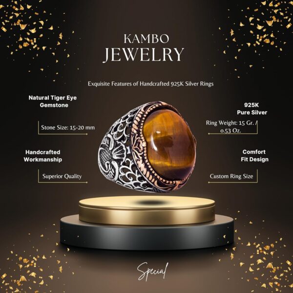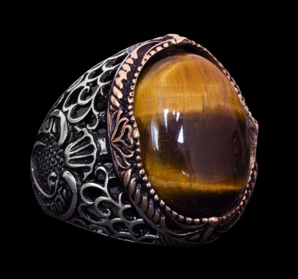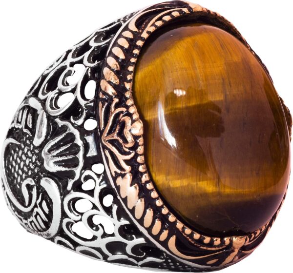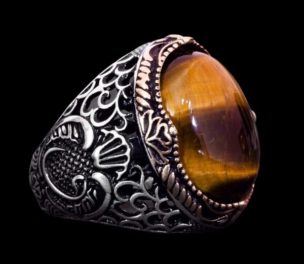 Tarzınızı yükseltin, bu 925 Ayar Gümüş Erkek Yüzük ile dikkat çekici Doğal Kaplan Gözü Taşına sahip. Kaplan gözü taşı, koruyucu özellikleri ve eşsiz altın-kahverengi rengi ile tanınan, bu muhteşem takının merkez parçasıdır.