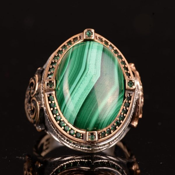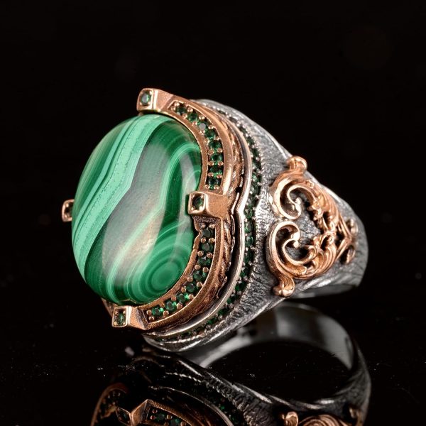 Günlük kullanım veya özel etkinlikler için mükemmel olan bu doğal malakit taşlı 925 ayar gümüş yüzük, sadece bir takı parçası değil; aynı zamanda bir stil ve miras ifadesidir. Bu yüzük, mükemmel bir hediye veya herhangi bir takı koleksiyonuna eşsiz bir ekleme yapar.