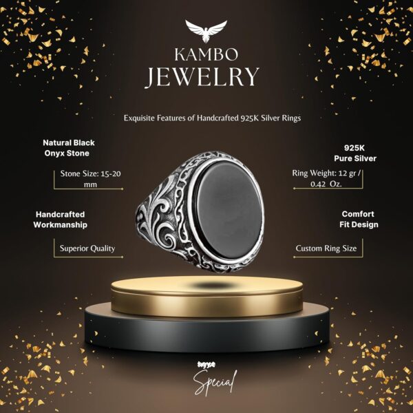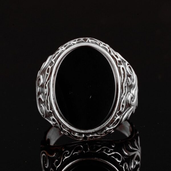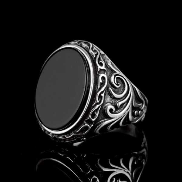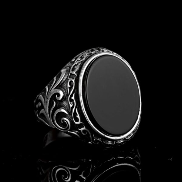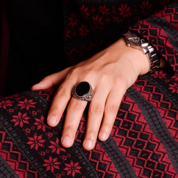 Tarzınızı yükseltin ve doğal siyah oniksin koruyucu enerjisini kucaklayın. Bu titizlikle el yapımı erkek yüzüğü, premium 925 ayar gümüşten üretilmiştir ve zarafet, sanat ve doğal siyah oniksin güçlü özelliklerini bir araya getirir.