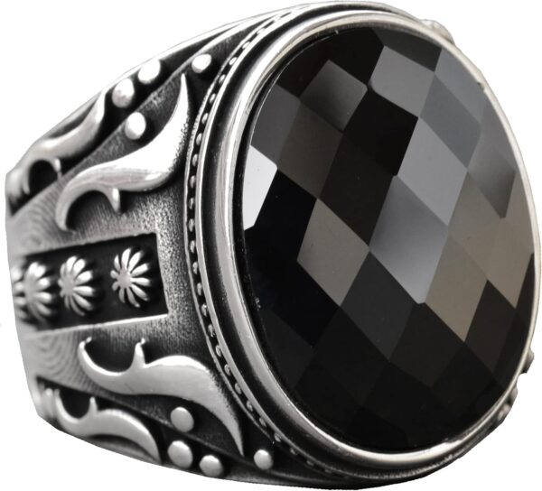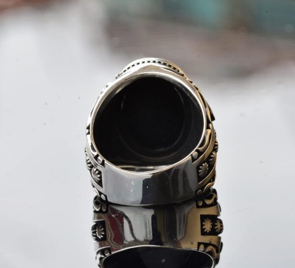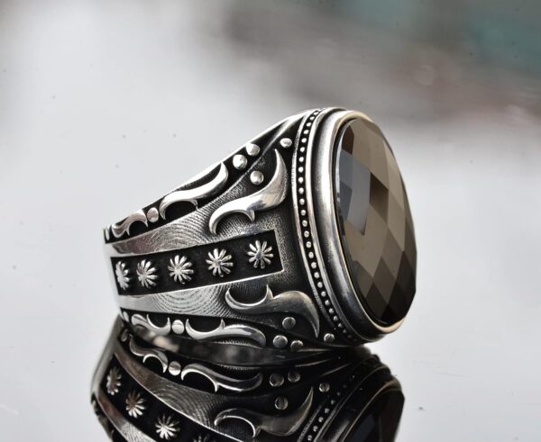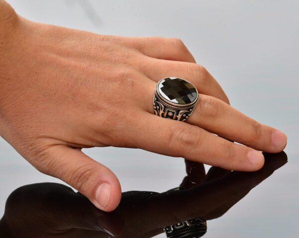 Özenle El Yapımı Tasarım: Bu erkek yüzüğü titizlikle el yapımıdır ve olağanüstü sanatı sergileyen karmaşık bir tasarıma sahiptir. Yüksek kaliteli 925 ayar gümüşten yapılmıştır ve kalıcı güzellik ve dayanıklılık vaat eder.