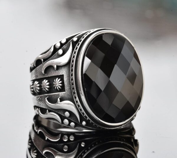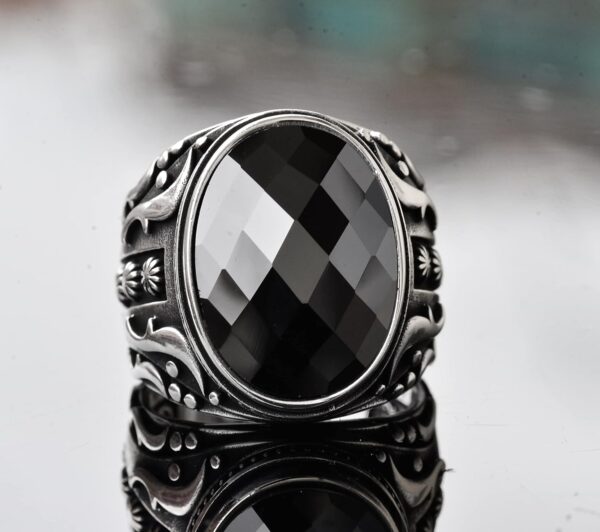Doğal Siyah Oniks Taşının Faydaları: Gerçek bir Siyah Oniks taşı ile süslenmiş bu yüzük, zarafet ve koruma sunar. Siyah Oniks, duygusal denge ve güç sağlayan topraklama ve koruma özellikleriyle bilinir.