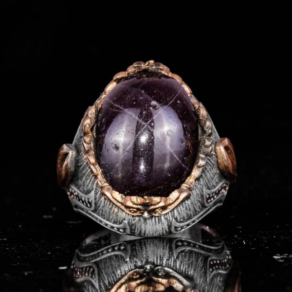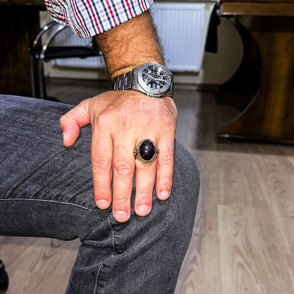 925 Ayar Gümüş Erkek Yüzük Doğal Star Garnet Taşı – El Yapımı İfadesel Takı