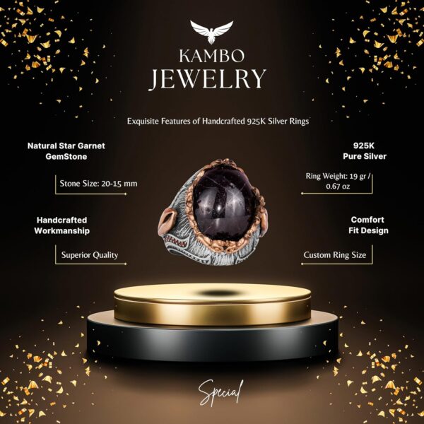 Erkekler için 925 Ayar Gümüş Yüzük ile Doğal Yıldız Granat Taşı – El Yapımı Zanaat Tasarımı