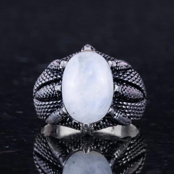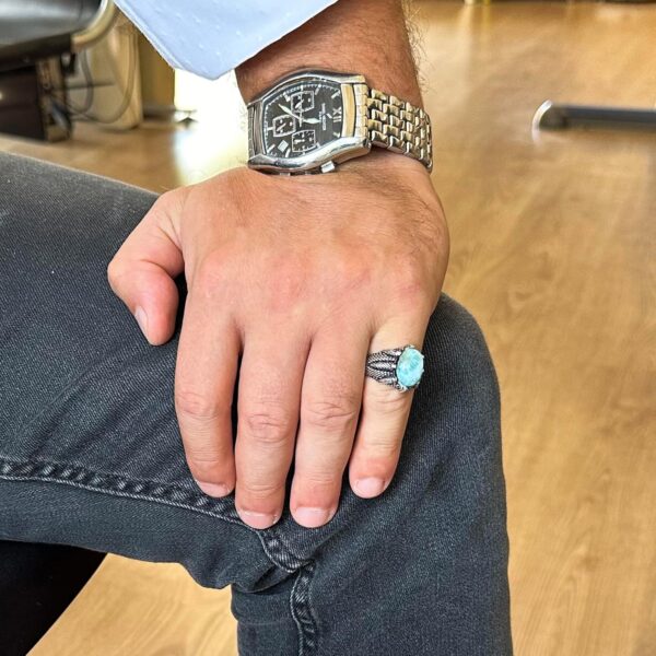 925 Ayar Gümüş Erkek Yüzük, Doğal Taşlı, El Yapımı Vintage Tasarım Pençeli Yüzük (Larimar)