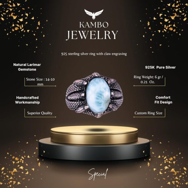 - Bu 925 ayar gümüş Larimar yüzüğü, hem stil hem de ruhsal bağlantı sunarak, Aslan burcunda doğanlar için anlamlı bir parça oluşturur.