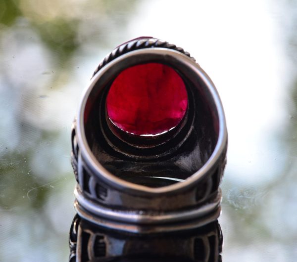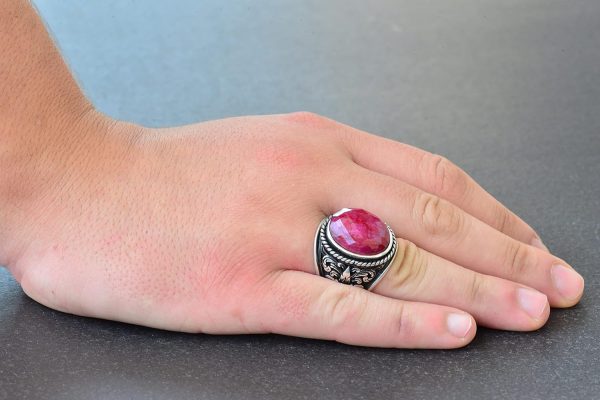 Doğal Yakut Taşlı 925 Ayar Gümüş Erkek Yüzük