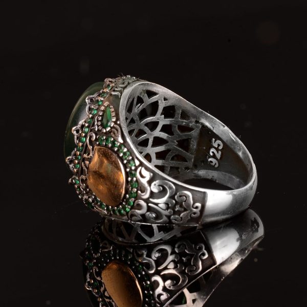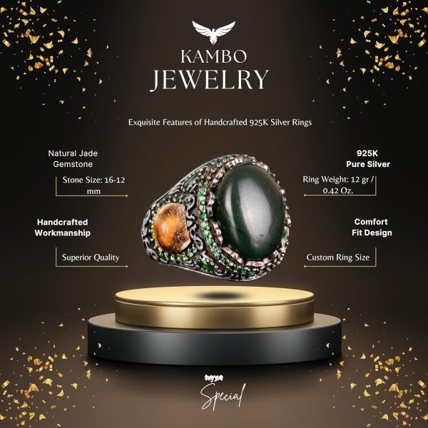 Bu muhteşem erkek yüzüğü, 925 ayar gümüşün zarafetini doğal yeşil rengin ve eşsiz desenlerin güzelliğiyle birleştirir. Kaliteli 925 ayar gümüşten üretilmiş olup, gerçek bir yeşim taşı ile süslenmiştir. Her yüzük, olağanüstü detay ve kaliteyi sergilemek için titizlikle el yapımı olarak hazırlanmıştır.