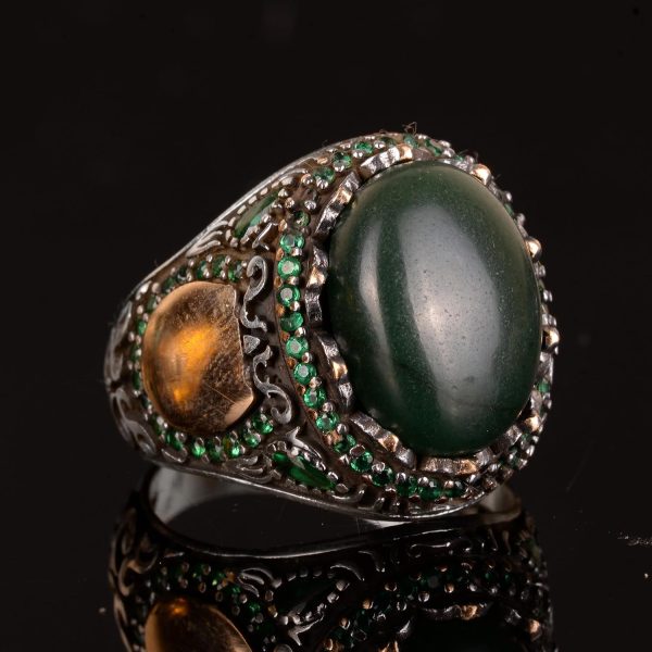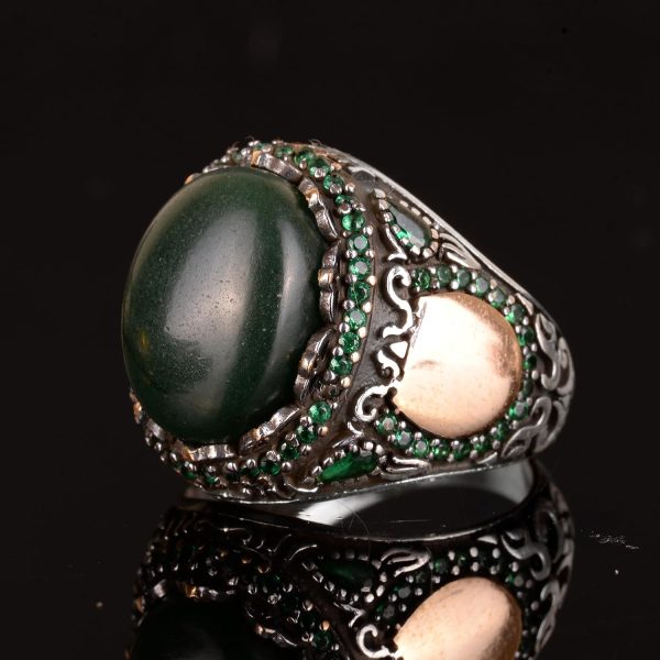 - Gerçek bir yeşim taşı ile süslenmiş olup, yüzüğe benzersiz ve doğal bir dokunuş katmaktadır.