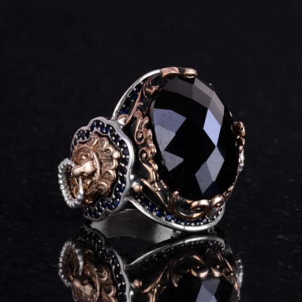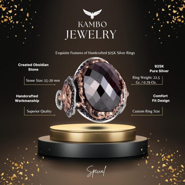 925 Ayar Gümüş Erkek Yüzük, El Yapımı Aslan Başı Erkek Yüzük, Zarif El Yapımı Gümüş Yüzük (Oluşturulmuş Obsidiyen)