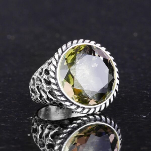 KAMBO 925K GÜMÜŞ ERKEK YÜZÜK – EL YAPIMI OLUŞTURULMUŞ SİTRİN TAŞI YÜZÜK