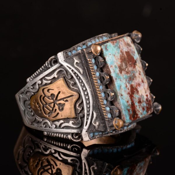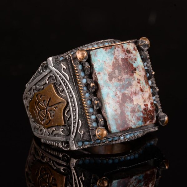 925 Ayar Gümüş Erkek Yüzük, Gerçek Arizona Turkuaz Doğal Taş Yüzük