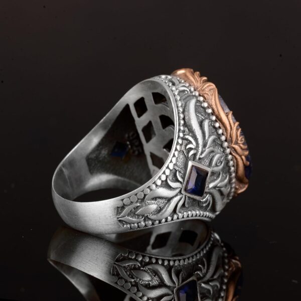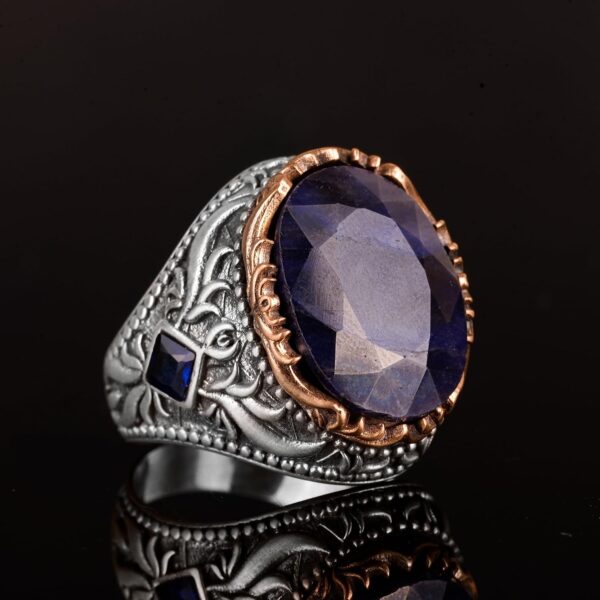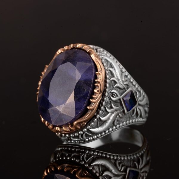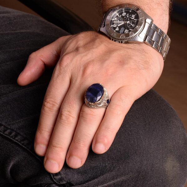 925 Ayar Gümüş Erkek Yüzük, Gerçek Doğal Safir Taşlı Yüzük, El Yapımı Yüzük