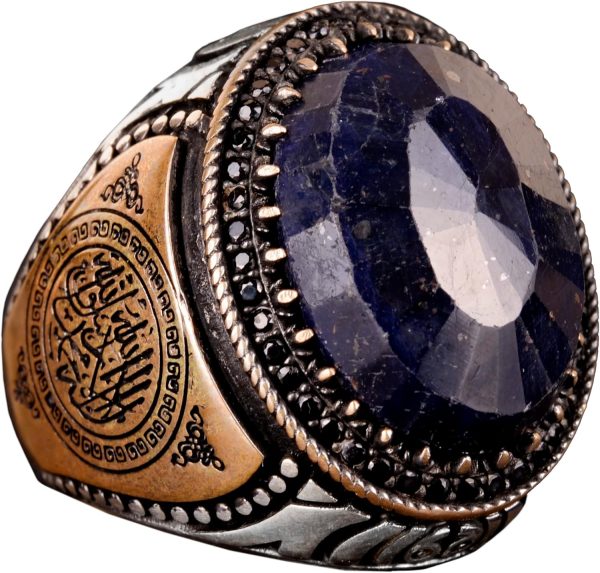 925 Ayar Gümüş Erkek Yüzük, Gerçek Doğal Taş Yüzük, İslami Yüzük (Safir)