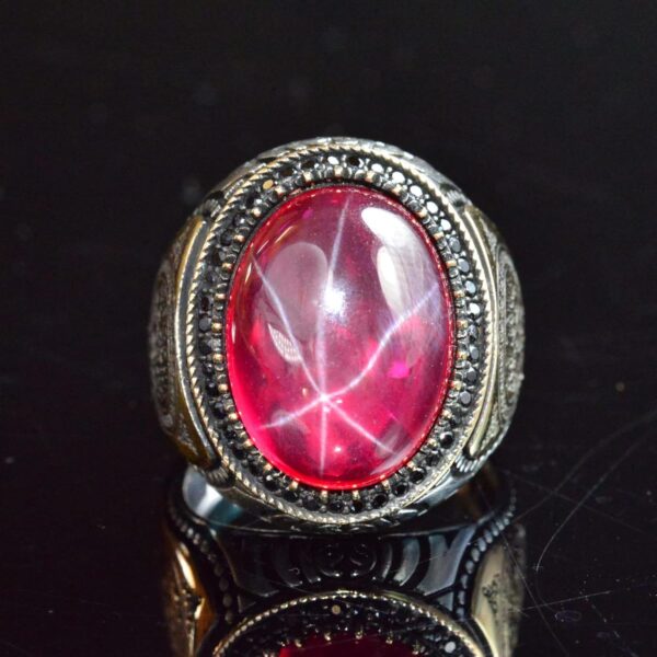 925 Ayar Gümüş Erkek Yüzük, Gerçek Doğal Taş Yüzük, İslami Yüzük (Yıldız Yakutu)