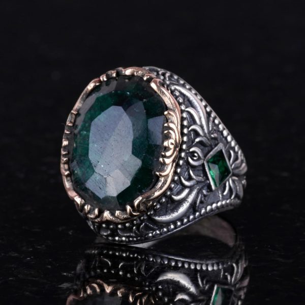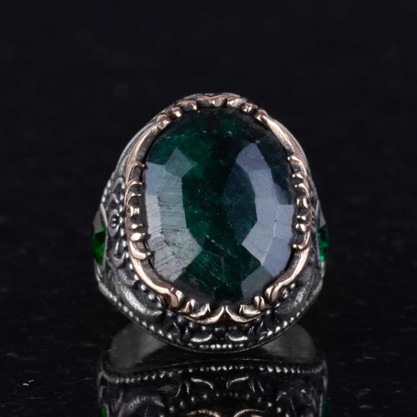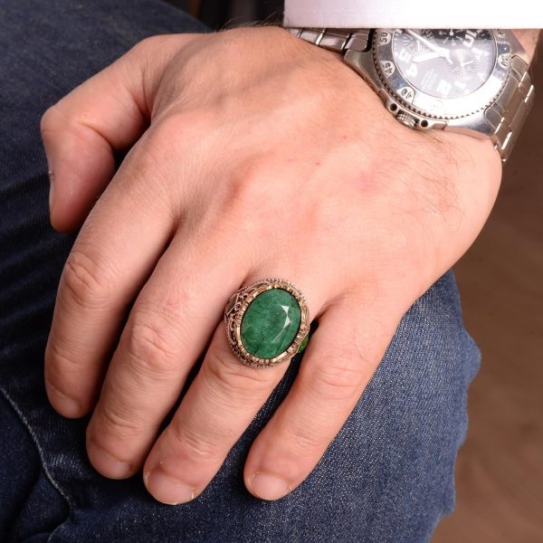 925 Ayar Gümüş Erkek Yüzük, Gerçek Doğal Zümrüt Taşlı Yüzük Erkekler İçin