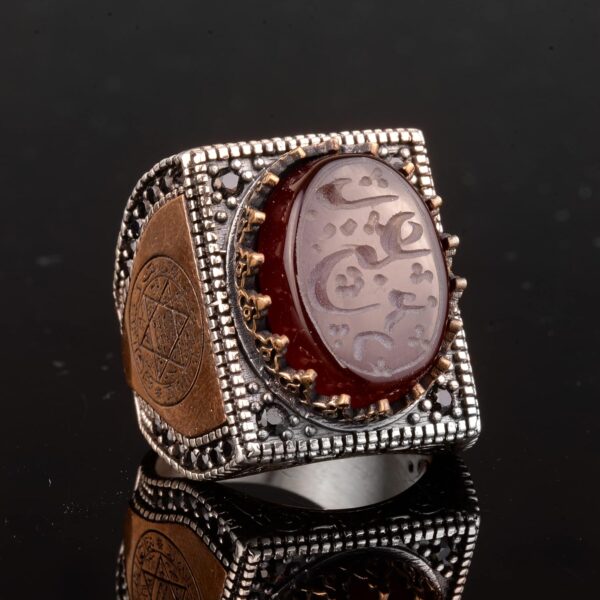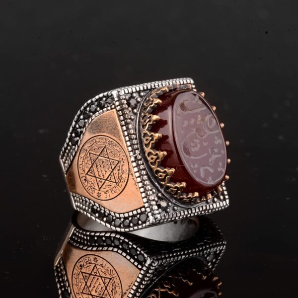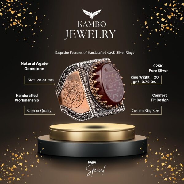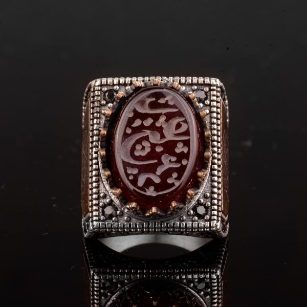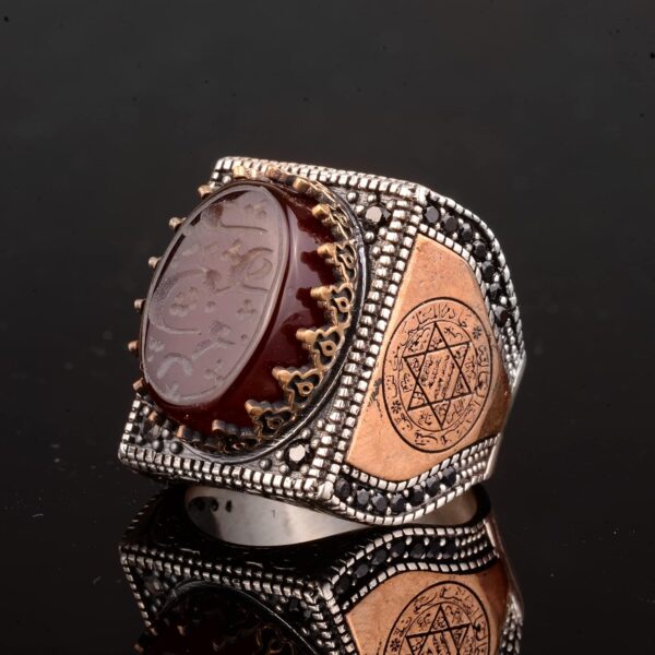 925 Ayar Gümüş Erkek Yüzük, İslami Erkek Yüzük, Müslüman Yüzük, Doğal Akik Taşlı