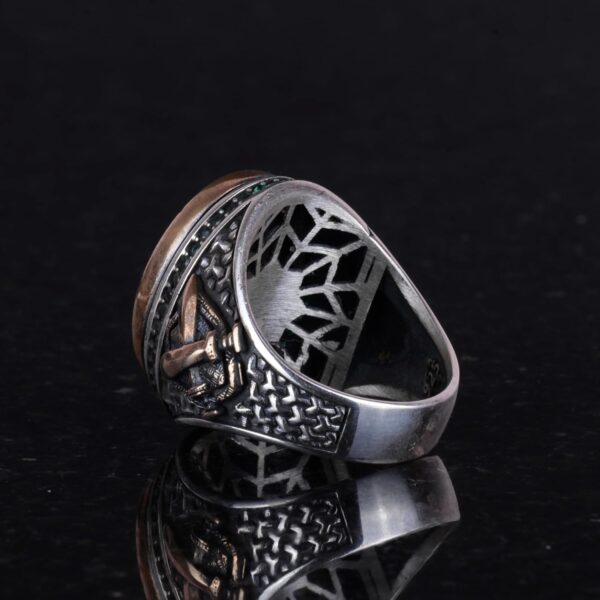El Yapımı İslami Yüzük – 925 Ayar Gümüş ve Bakır Detaylı Erkek Takısı