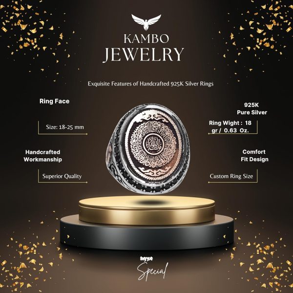 925 Ayar Gümüş Erkek Yüzük, İslami Yüzük, Lailahe illa Allallah Muhammeden Resul Allah
