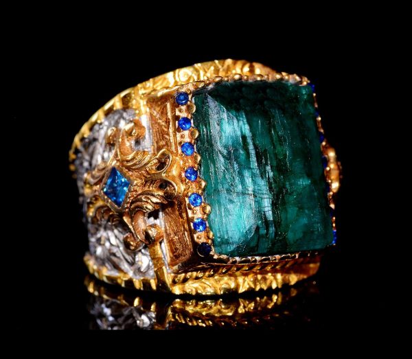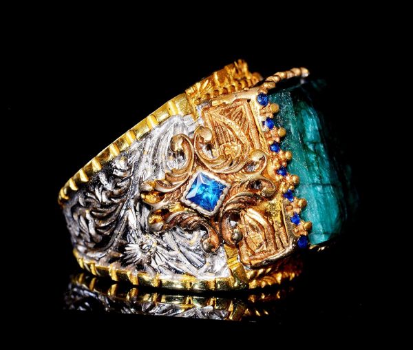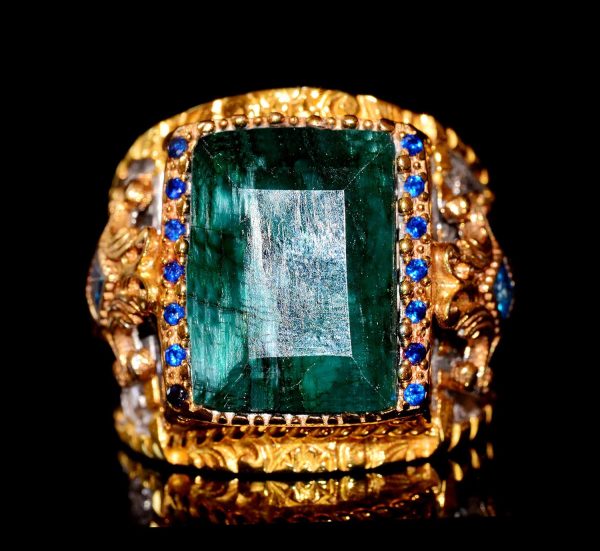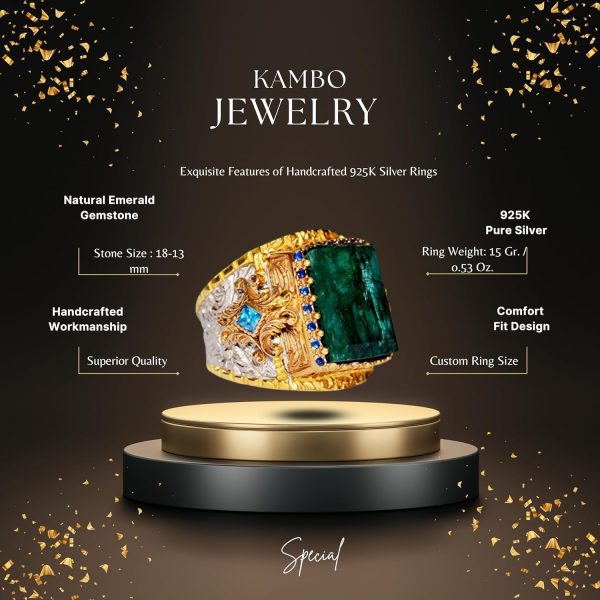 Zarif Tasarım: Dikdörtgen doğal zümrüt taşı, zarafet ve şıklık katarak bu yüzüğü her türlü etkinlik için mükemmel bir aksesuar haline getirir.