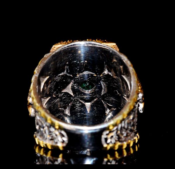 Kral Yüzük Tarzı: Bu yüzüğün cesur ve ihtişamlı tasarımı öne çıkar, ince takıları seven erkekler için mükemmel bir ifade parçasıdır.