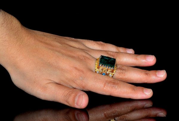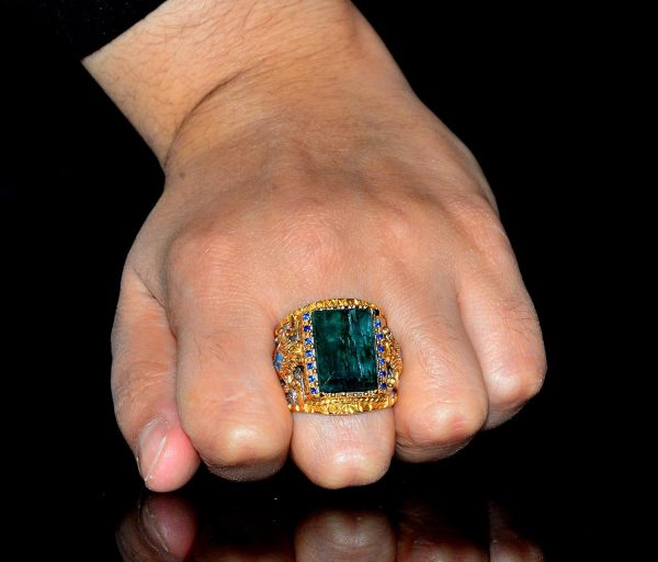 Doğal Zümrüt Taşı ile 925 Ayar Gümüş Erkek Yüzük – Bu muhteşem erkek yüzük, yüksek kaliteli 925 ayar gümüştan üretilmiştir ve dikkat çekici dikdörtgen doğal zümrüt taşı ile süslenmiştir. Kral Yüzük tarzındaki cesur ve ihtişamlı tasarımı, her kıyafete şıklık ve zarafet katacak dikkat çekici bir takı parçasıdır.