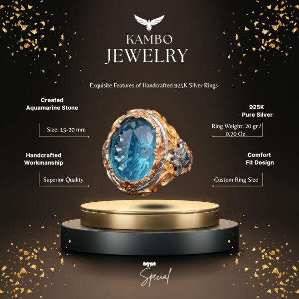 925 Ayar Gümüş Erkek Yüzük, Kral Yüzük, Yapay Akuamarin Taşlı Yüzük Erkekler İçin