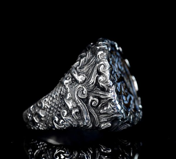 925 Ayar Gümüş erkek yüzük, etnik tasarım, eşsiz el yapımı gümüş yüzük.
