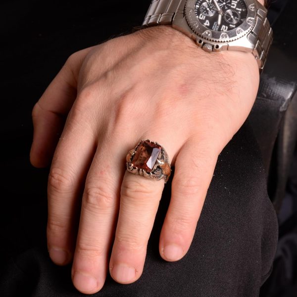 925 Ayar Gümüş Erkek Yüzük – Oluşturulmuş Sitrin veya Oluşturulmuş Sultanit – Şık Tasarım ve Zamansız Çekicilik