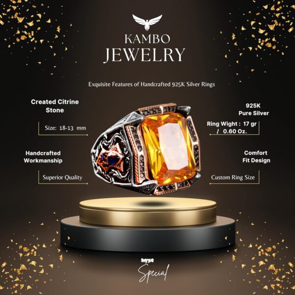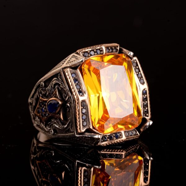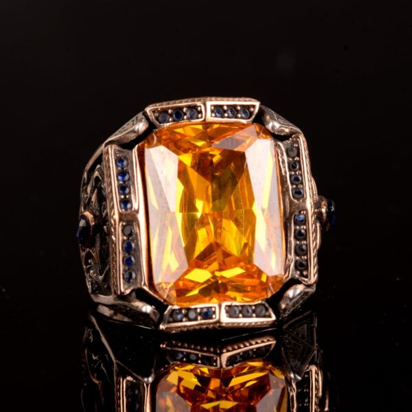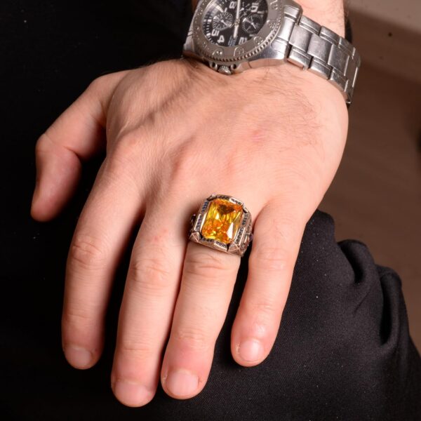 925K Gümüş Erkek Yüzüğü, Oval Taş Yüzük, Üretilmiş Sitrin Taşı Yüzük Ağırlığı: 24.10 gr