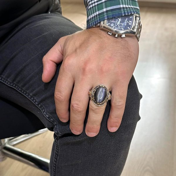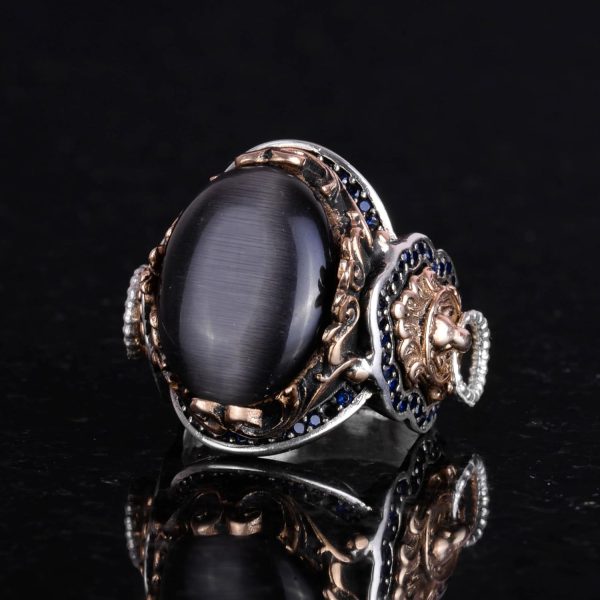• Zamansız Tasarım: Kedi Gözü taşının derin siyah rengi, güçlü aslan sembolü ile tamamlanarak özgün ve şık bir görünüm sunar.