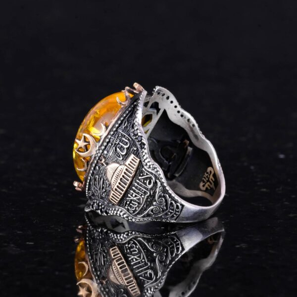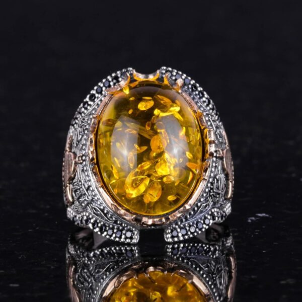 925 Ayar Gümüş Erkek Yüzük, Yapay Bal Amber Taşı Yüzük
