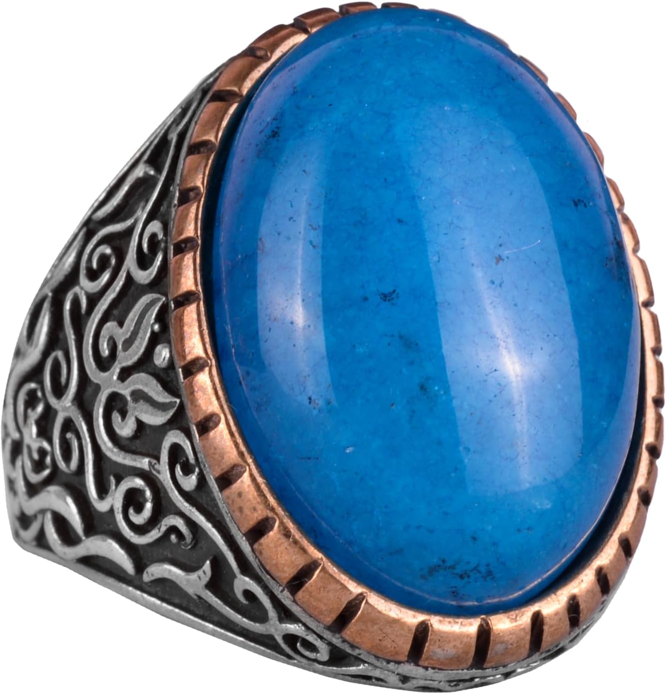 “925 Ayar Gümüş Erkek Yüzük, Yapay Turkuaz Taşı, Osmanlı Yüzüğü”