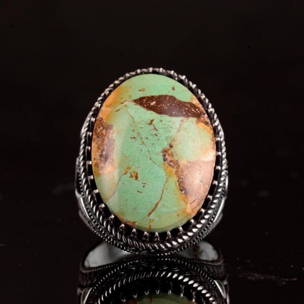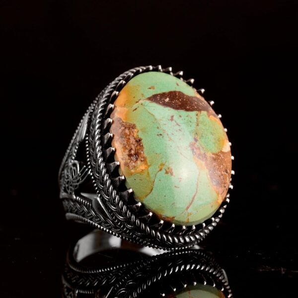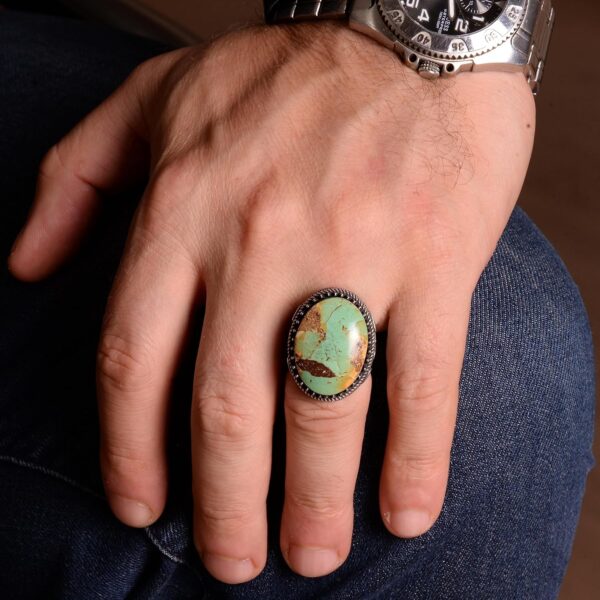 925 Ayar Gümüş Erkek Yüzük, Yeşil Turkuaz Taşı, Doğal Turkuaz Taşlı, El Yapımı Gümüş Yüzük