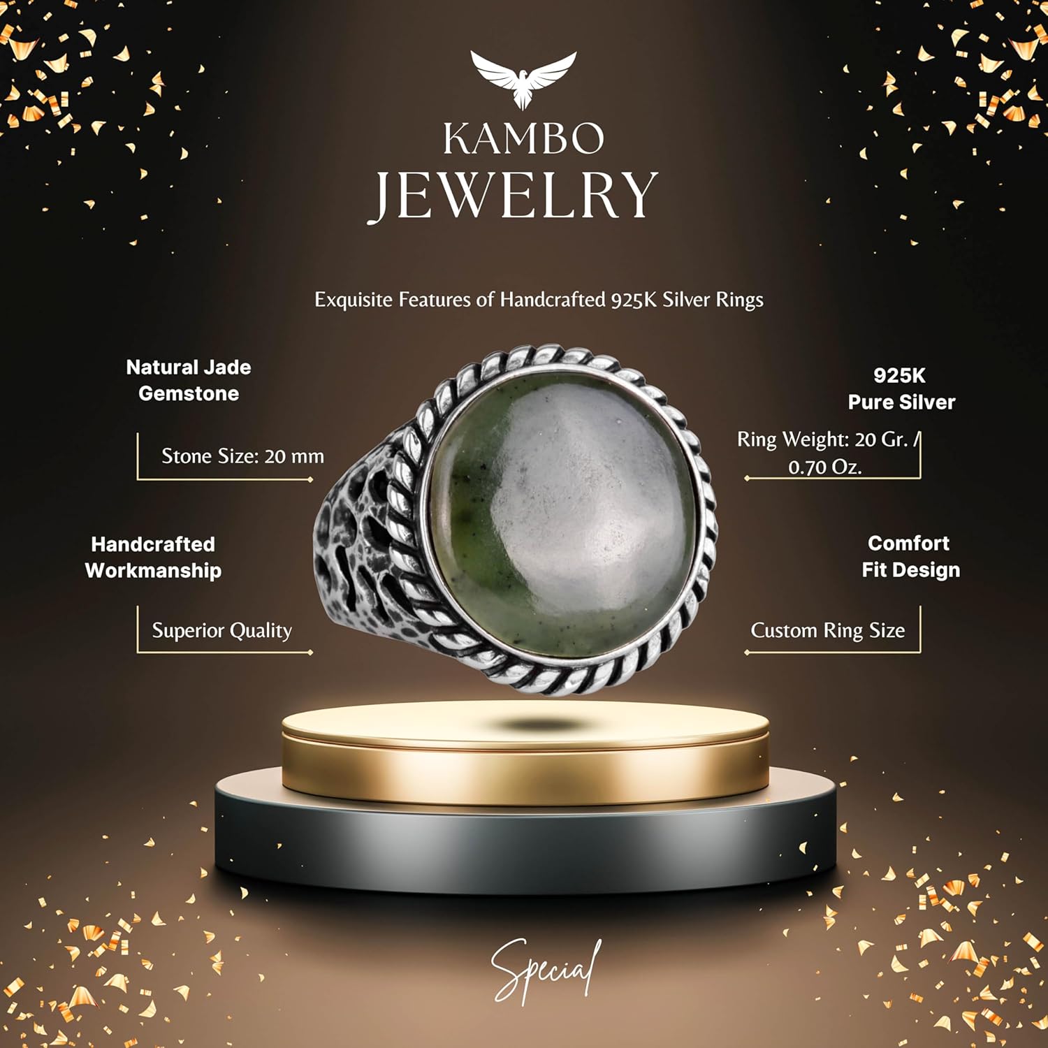 Bu muhteşem yüzük, 925 ayar gümüşün zamansız zarafetini doğal yeşil turkuazın canlı güzelliği ile birleştiriyor. Her parça titizlikle el yapımıdır, bu sayede benzersiz ve yüksek kaliteli bir tasarım ortaya çıkmaktadır.