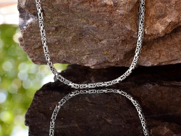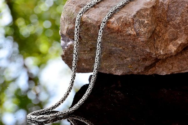 Bu şık 925 Ayar Gümüş Erkek Zinciri ile stilinizi yükseltin; 3 mm’lik Bizans tasarımı, zamansız zarafeti modern işçilikle birleştiriyor.