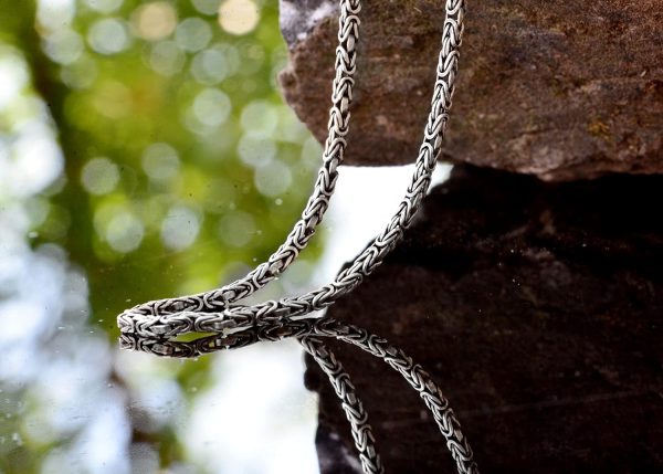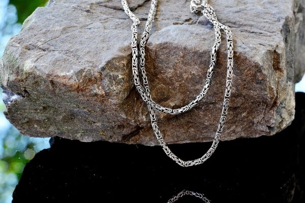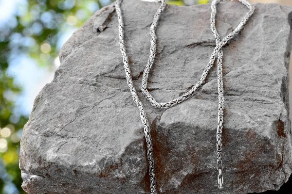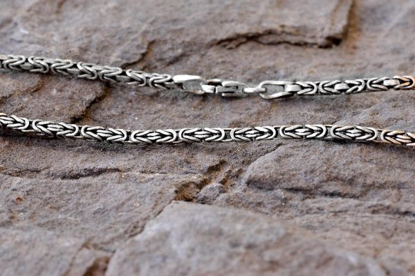 Bu el yapımı zincir, dayanıklılığı ve göz alıcı bir parlaklık sunan katı 925 Ayar Gümüş’ten üretilmiştir. Karmaşık Bizans deseni, sadece güç ve karmaşıklığın bir sembolü değil, aynı zamanda rafine bir zevkin ifadesidir.