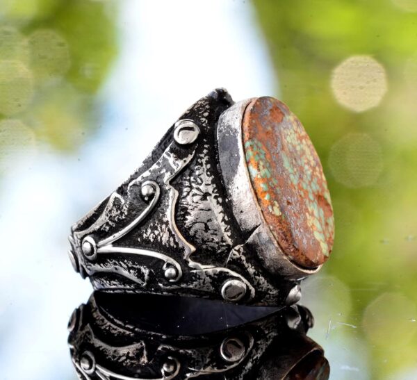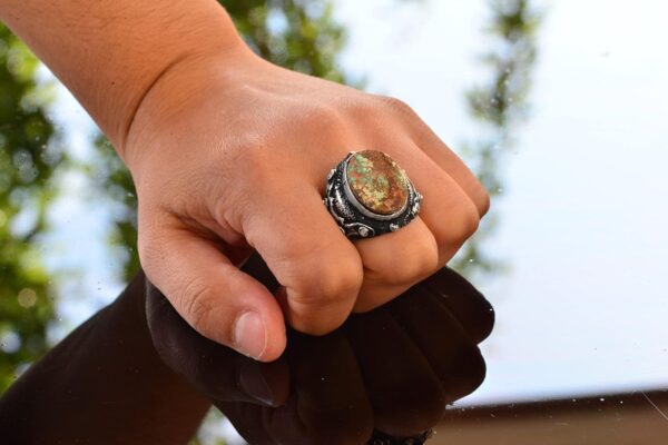 925 Ayar Gümüş Gerçek Arizona Turkuaz Taşlı Bizans Erkek Yüzüğü – El Yapımı Takı